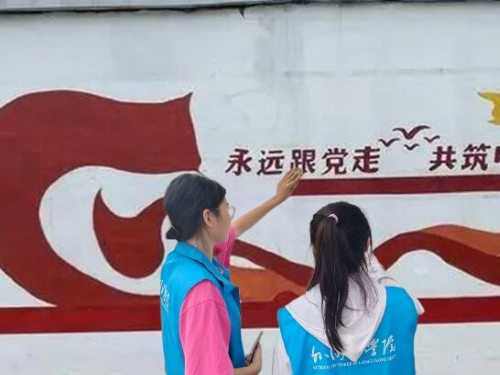 为做好此次红色文化宣传墙绘活动,实践团提前与北崮山村村委会书记沟通,充分了解北崮山村建设整体布局,充分发挥我院外语特长,经与街道负责人多次沟通,最终确定了墙绘方案。