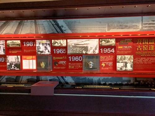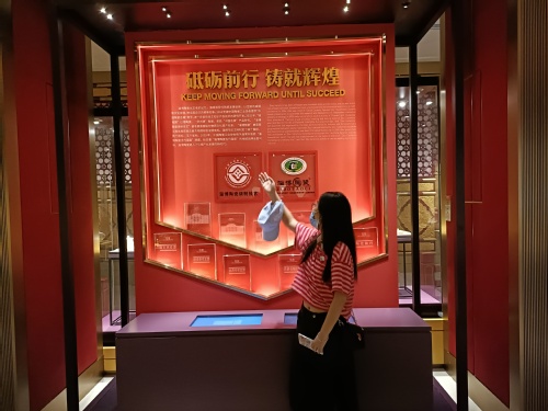 按照朝代顺序,实践团成员参观了不同时代展厅,从远古时期造型简单、色彩单一、用途较少的陶器,到元代造型精致、清新淡雅的青花瓷,再到国宴上造型各异、花纹独特的各类陶瓷制品,与中国英文同名的china,陶瓷的发展印证了时代发展。