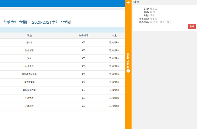 4、已通过的辅修报名,点击退报申请