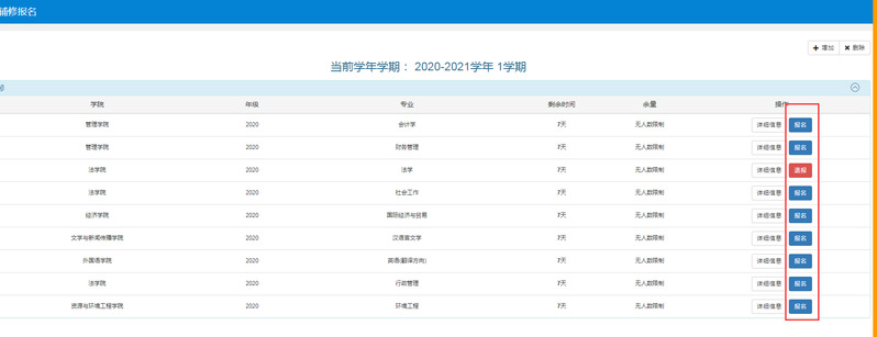 2、选择开设的专业点击报名