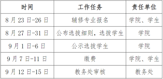 3) 根据学生报名情况和学校要求,学院制定并公布具体选拔细则(主要依据学生兴趣、成绩单、大学英语成绩等)。选拔结束后学院将拟录取名单公示五天,学生登陆辅修专业学院网站查询有关通知及详细信息。