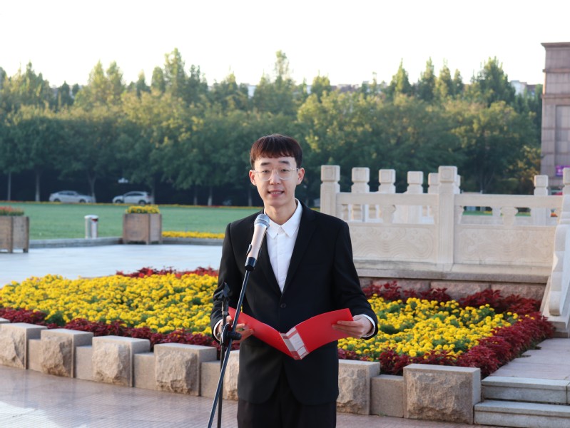 升旗仪式第二项,学院教师代表崔鹏讲话。崔鹏以“献礼二十大,畅谈新征程”为主题作了讲话,在学校第四次党代会顺利召开之际,他表示作为一名山理工外院人,同学们代表了外院的现在和未来;作为当代青年,同学们是中华民族无限的希望和美好的明天;作为与新时代同向同行、共同前行的一代,在民族复兴的壮阔征程上,同学们重任在肩,应当志存高远,勤于学习,奋楫逐浪,努力创造出无愧于时代和人民的新业绩,以实际行动向党的二十大献礼。