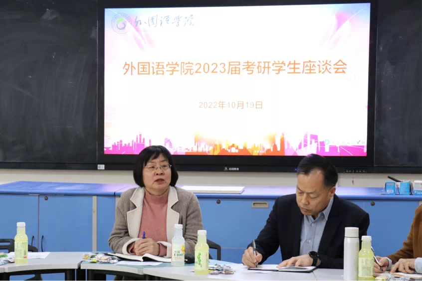 座谈会上,2023届考研学生代表结合备考情况和过程中遇到的问题逐一发言。考研学生发言主要围绕师生交流机制、备考环境及设施、备考期间学习疑问以及自身学习内驱力问题四个方面展开。针对同学们提出的问题,老师们集思广益,结合个人经历,为学生们答疑解惑、提供建议。