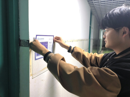 11日下午,主席团与学生进行交流,了解同学们宿舍日常生活情况,并协同为宿舍进行公约挂牌。此外,周君如呼吁学生牢记宿舍公约,以此为目标,激励学生在未来的生活中继续努力,彰显优秀外院人的风采。