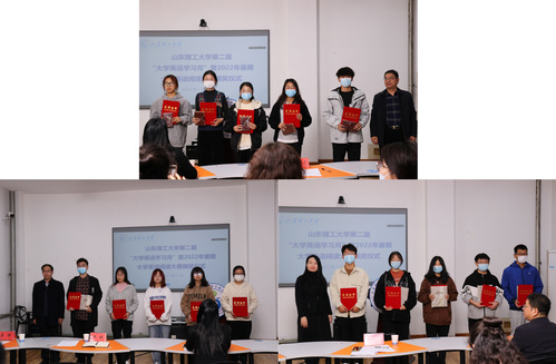 WilliamHill中文院长助理张雷就2022年暑期大学英语阅读大赛组织、参赛获奖情况进行介绍,庞秋香、王振、高明亮分别为一、二、三等奖获奖学生代表颁奖。
