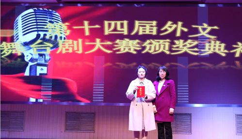 最后,《The Phantom of the Opera》参赛团队获得一等奖。《白雪公主和皇后的爱恨情仇》《皇帝的新装》参赛团队获得二等奖。《Romeo&Juliet》《百万英镑》《Never regret》参赛团队获得三等奖。三位评委为参赛选手颁奖,并一同合影留念。