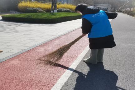 有的用扫帚清扫掉落在路边的垃圾和灰尘,