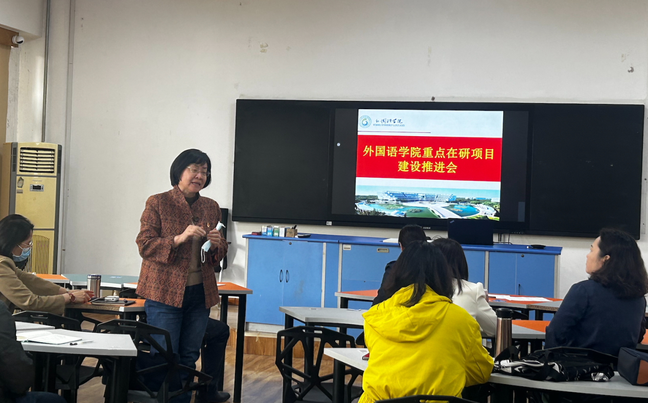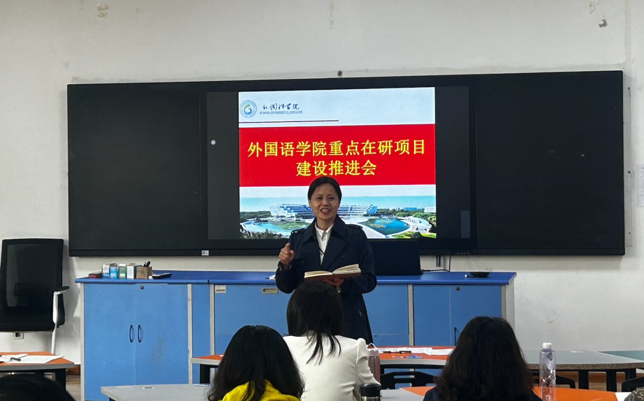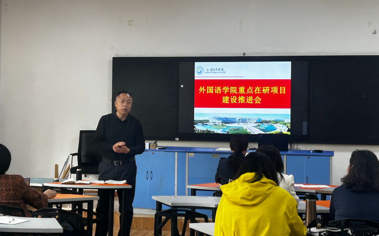为有组织地推进学院教研、科研工作,既注重项目立项,也注重项目建设,4月27日下午,外国语学院在8号教学楼218教室召开重点在研项目推进会,学院领导班子成员、各系部主任、在建项目负责人及教师代表参加会议。此次会议线下线上同步进行,会议由副院长张燕主持。