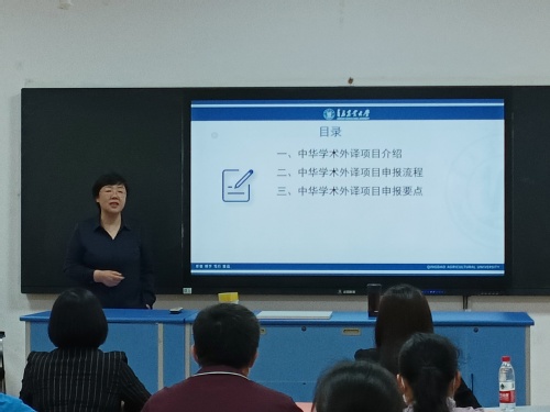 会议伊始,张燕副院长简要传达了学校国家社科基金项目申报组织工作会议精神。随后,纪卫宁教授从项目介绍、申报流程和申报要点三个方面进行了剖析。纪教授指出该项目申报人须具备较强的综合能力,包括翻译能力、国际传播能力、学习能力、团队协作能力、调研能力和沟通协调能力等。此外,她从自身申报经验着手,抽丝剥茧,对项目申报的基本流程进行了详细阐述,并重点强调了书目选择、样章翻译、申报书撰写和协调沟通四个核心要素的重要性。