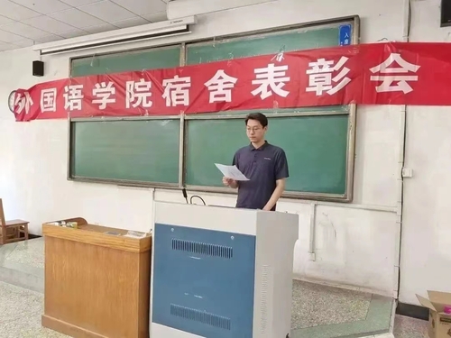 邱晨对5月份卫生成绩较差的宿舍进行通报并提醒同学们毕业季来临之际,要积极营造安全、有序、文明的宿舍环境。