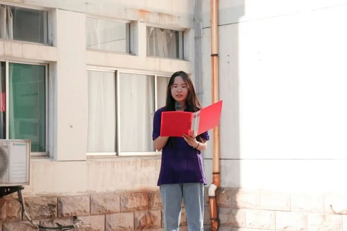 “温暖同行”社会实践团队长赵轩代表实践团团队发言,她从宏观到微观深刻阐述了社会实践对大学生的重要性。她表明,作为大学生应当立志做有理想、敢担当、能吃苦、肯奋斗的新时代好青年,积极主动地锻炼自己,充分利用所学知识,缩短与社会接触的过渡期,为祖国的发展贡献青年力量。