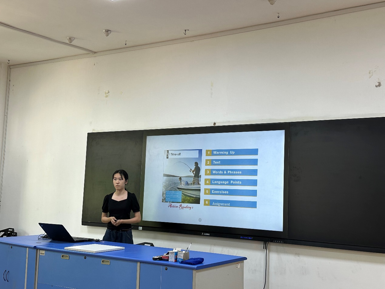 随后,李丹丹老师以《大学英语Ⅱ》课程第五单元为主题进行了20分钟现场试讲。李老师试讲准备充分,PPT制作简洁优美,课堂导入合理,教学方法得当,教学过程流畅,语言表达清楚,注重信息技术的运用,教学效果良好。试讲结束后,谭洪进老师作为指导教师就李丹丹老师“三段一线”培训情况进行了交流,分享了对李老师培养的规划、方法和效果。指导过程中,谭老师帮助李老师树立教学信心,通过多次试讲、听课改善课堂效果,鼓励李老师参加竞赛,以赛带练。谭老师表示“导师制”培养也是与李老师互相学习、共同进步的过程。
