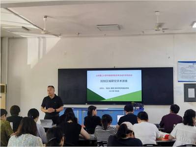 牛书田院长作总结。他指出,国别区域研究是外语学科五大研究方向之一,此次讲座是区域国别研究系列讲座的开始,是进一步落实学校赴阿联酋、科威特代表团出国成果,探索具有我院特色的国别区域研究学科专业建设和学术研究路径的新举措。马教授的讲座展现了一幅国内区域国别研究的全景图,为老师们开展区域国别研究厘清了思路和方向。他强调,山东省正在积极拓展建设对外开放新高地,希望老师们通过此次讲座能够找到自己研究和实践的坐标、锚定自己研究实践的航向,产出更多区域国别研究领域的成果,助力学校学院高质量发展,服务淄博市、山东省重大发展战略。
