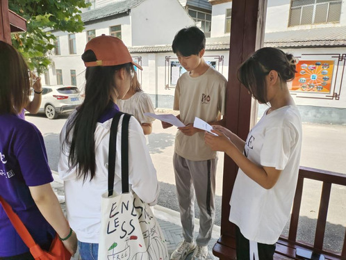 随后,实践团成员开始在北崮山村进行实地调研。针对北崮山村特色产业和红色文化传播方式展开调查走访,发放调查问卷。问卷调查结束后,在北固山村村干部的带领下,实践团先后参观了焦裕禄入党处,焦裕禄入党旧址,以及焦裕禄小学就读处等多个景点。通过村干部的讲解介绍,实践团了解到当地基层党组织传承弘扬焦裕禄精神,以红色文化带动二三产业、特色产业发展,不断提升村民幸福感,让乡村振兴的步伐迈得更快更稳。