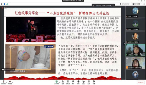 为进一步促进新时代青年对红色精神的理解和感悟,实践团成员向参会学生分享红色革命故事,董存瑞舍身炸碉堡、抗美援朝断臂老战士李化武和赵一曼宁死不屈的英雄事迹激励青年不断学习奋斗,为实现中华民族的伟大复兴贡献青春力量。