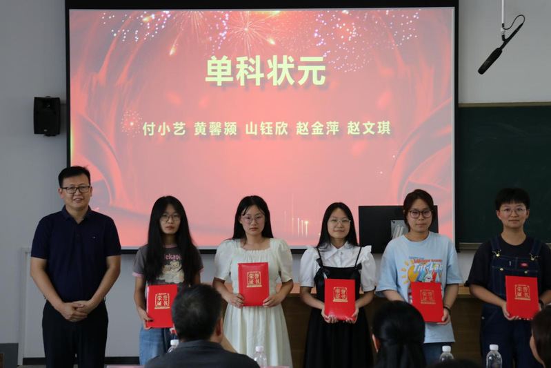 随后举行颁奖仪式,彭静、张雷、牛书田分别为为全勤打卡、单科状元、进步之星获奖的同学颁奖。