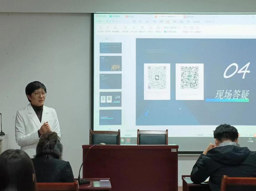 高雅从国际中文教育的发展历程和发展现状、升学就业情况、CCTC证书介绍和现场答疑四个维度全面介绍CCTC的当前现状和发展前景。高雅表示,国际中文教育的发展历经了探索期、海外大发展时期和创新期三个阶段,目前已较为完善和成熟。中文在国际舞台的影响力与日俱增,国际中文教育成为了展示中国风采、促进民心相通的重要窗口。由此,CTCC为学生的升学就业提供了新的思路和机会,它为传播中国文化、讲好中国故事提供了重要渠道,在国际中文教育中占有重要地位。高雅从CTCC证书的背景、用途、获奖要求及考试的时间和形式等多方面展开介绍,强调其对跨文化交际、中国文化及国际传播等能力的考察和要求。最后高雅进行现场答疑,促进学生对国际中文教育的进一步了解。