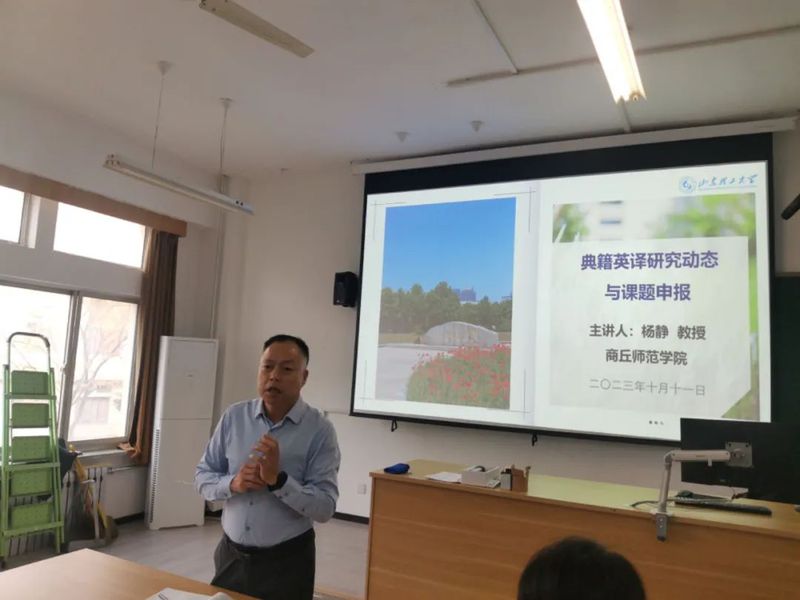 为拓宽典籍英译课题申报思路,10月11日下午我院特邀商丘师范学院外语学院副院长杨静教授做专题报告。WilliamHill中文党委书记李静、院长牛书田、2024年度国家社科基金项目申报人员及科研骨干教师参加本次报告,报告会由副院长张燕主持。