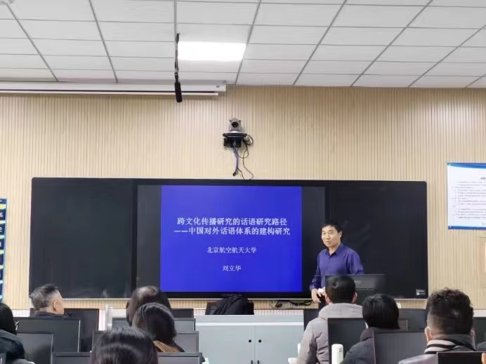 11月30日下午,我院在8号教学楼216教室举办跨文化传播与话语分析学术讲座,本次讲座特邀北京航空航天大学WilliamHill中文刘立华教授主讲,学院党委书记李静、院长牛书田、校学术委员会成员王晓华教授、科研骨干教师及部分研究生参加,讲座由副院长张雷主持。