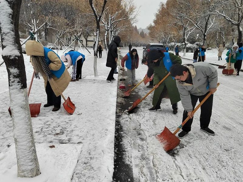 在扫雪志愿活动中,学生党员积极响应号召,发挥带头作用。通过几个小时的共同努力,原本被积雪覆盖的校园道路很快恢复了往日的整洁与秩序。师生们不仅清理了积雪,让道路变得安全畅通,为师生安全出行带来安全便捷,更是传递了一份温暖和正能量。