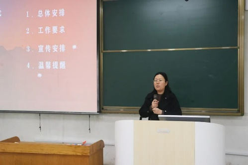 大会伊始,英语教育系教师陶新慧从总体部署、工作要求、宣传总结和注意事项四个部分介绍了本次实习支教的具体安排。辅导员马梓轩从安全意识、管理规范、请假制度等五个角度详细介绍了实习安全的相关事项。