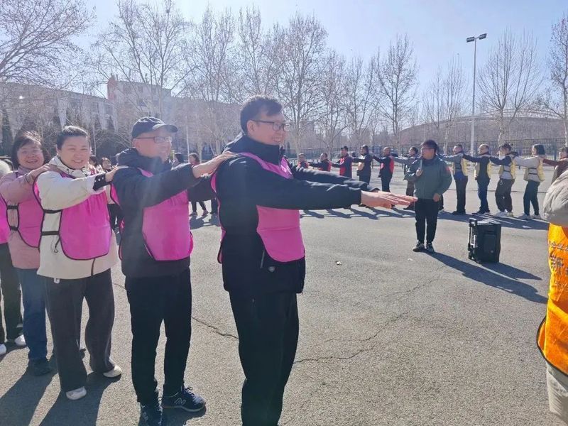 在教练员的组织下,老师们完成了热身活动,分成了4个团体小组。本次素质拓展分为“沙袋大战”“众星捧月”“爱的传递”三个模块。老师们以团体小组展开了比赛角逐,在“沙袋大战”环节中,老师们摩拳擦掌,投“袋”命中;在“众星捧月”比拼中,团队成员齐心协力,通力配合;在“爱的传递”项目中,大家接力传递,相互协助。活动现场交织着笑声、掌声、喝彩声,既锻炼了身体,愉悦了心情,更进一步加深了教职工之间的沟通和交流。
