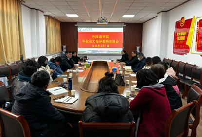为规范毕业论文过程管理,提升论文指导教师执教能力,保障2024届本科毕业生毕业论文质量,3月7日下午4:00,学院在111会议室召开本科毕业论文指导教师培训会。会议邀请商务英语系崔金枝副教授作毕业论文指导经验分享,首次指导毕业论文的全体教师参加。会议由副院长张雷主持。