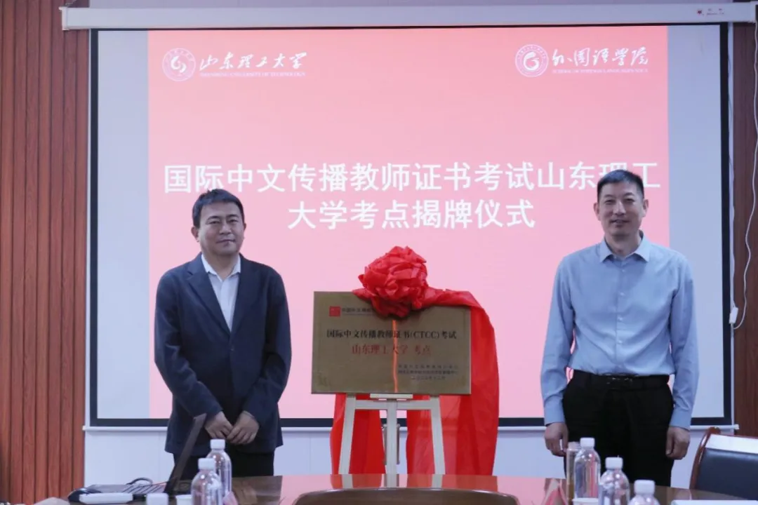 郭庆兵与韩立强共同为国际中文传播教师证书考试williamhill中国考点揭牌。