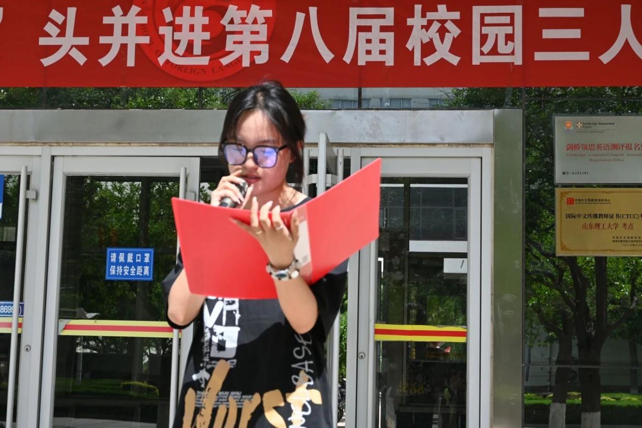 启动仪式第三项,崔鹏宣布同心协力,“骑”头并进——第八届校园三人骑行比赛正式开始。
