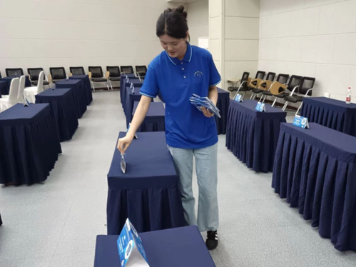 5月14日,我院第二批29名志愿者陆续到达广饶国际博览中心,在熟悉工作内容后迅速投入到志愿服务工作中。展览会期间,我院志愿者分成注册引导组、门禁组、会议组等六组并积极参与登记引导、行李寄存、秩序维护、会场布置、翻译等多项志愿服务,为参展人员提供热情、专业、细致的服务,确保了展会各环节顺利进行。