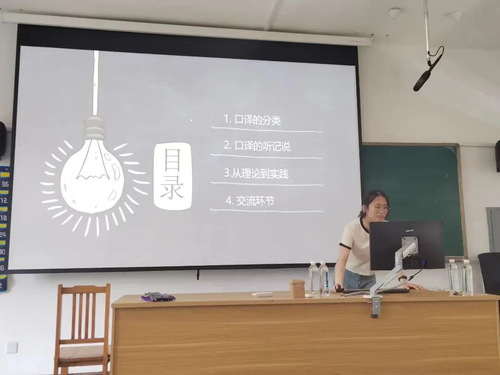 周晓晴以“从‘听’到‘记’再到‘说’的一场修行”为题,从翻译中如何“听得懂”“记得住”“说得出”三方面为学生们带来多种翻译技巧,并给学生们带来三段口笔译实战材料,激发了学生们对英语语言的学习兴趣和提升自我的迫切心情。