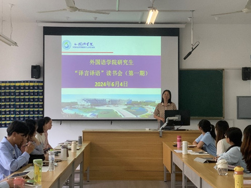 为营造爱读书、读好书、善读书的浓厚氛围,培养研究生独立思考和学术研究的能力, 6月4日下午,我院于8号教学楼217教室举办研究生“译言译语”读书会(第一期)活动。校学术委员会委员、研究生导师王晓华教授,学院党委副书记、纪委书记宋伟,副院长张燕,翻译硕士中心主任樊丽霞以及2022、2023级研究生共同参与本次活动。