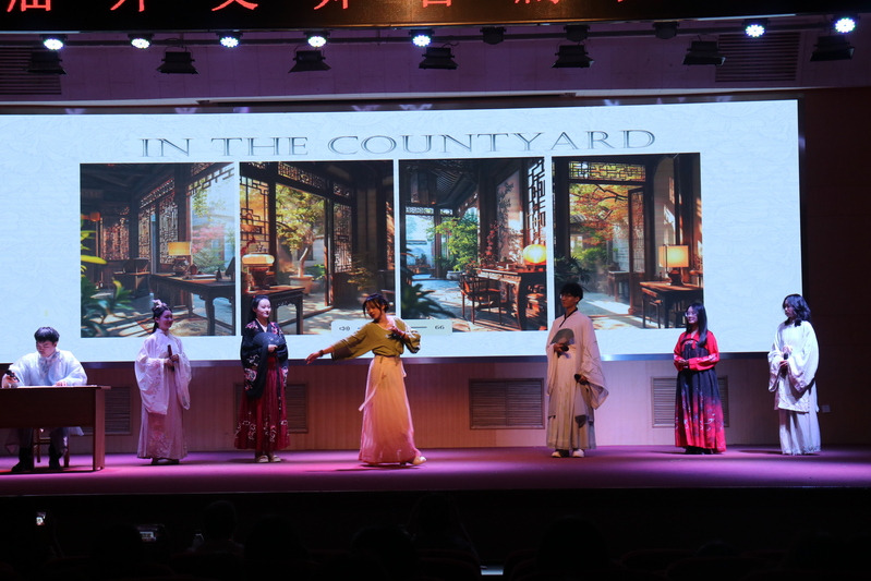 为弘扬传承中华优秀传统文化,展现当代大学生风采,由我院承办的第十一届科技文化艺术节“传承经典”英文舞台剧大赛决赛于6月11日晚在三号报告厅举行。WilliamHill中文教师郑海舰、赵莉、外教Dave担任评委。此次比赛共有来自全校的8个团队参加,他们一起打造了一场外语戏剧的盛宴,带领同学们领略了语言与表演交织的绚丽华章。