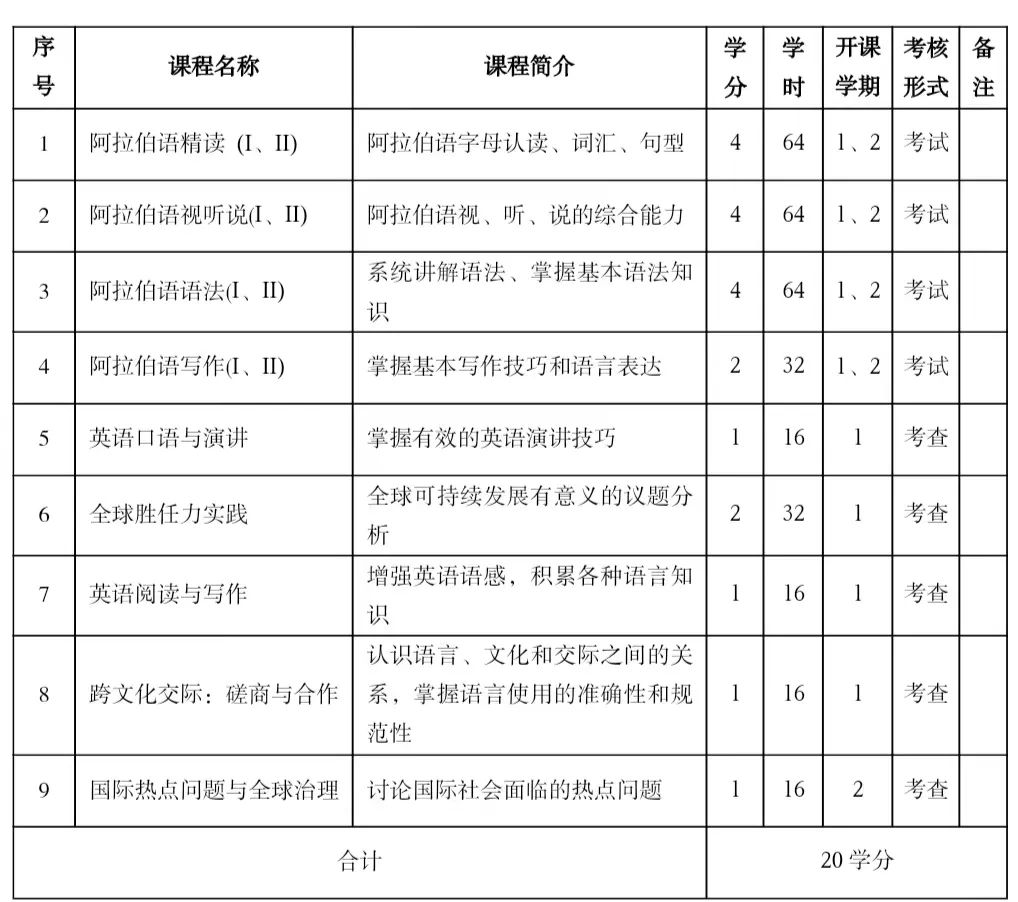 面向全日制本科生,计划招生人数为20人。要求热爱祖国,主修专业成绩良好,英语基础好,对阿拉伯语学习感兴趣。