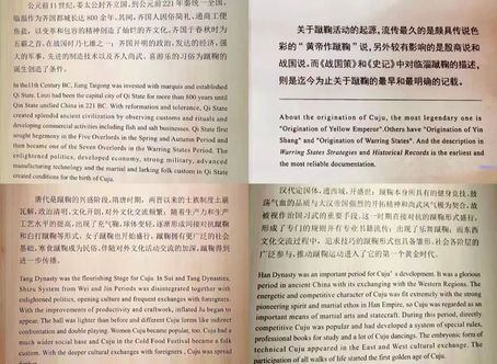 实践团成员首先领略了蹴鞠源远流长的历史。通过研读图文并茂的中英文展板,实践团成员了解到足球在不同文明中的演变、制作过程。足球起源可追溯至先秦时期,其发展历程历经数千年之沉淀,逐渐演变为一种竞技运动。随后,实践团成员对展区所设中英文展板的翻译进行记录、校对,充实齐文化语料库,促进跨文化交流和信息共享。