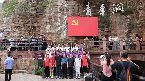 随后,实践团来到红旗渠咽喉工程——青年洞,近距离感受“人工天河”的雄伟壮观。青年洞前,鲜红的党旗格外醒目,映证了修建红旗渠的党员干部群众战天斗地的豪迈气概。实践团成员纷纷感悟,红旗渠的建设不仅仅是一个伟大的水利工程,更是一座伟大的精神丰碑。