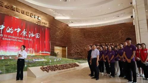 随后,实践团成员一同前往中原文化宫中原油田展览馆,了解中原油田开发建设的辉煌历程,感受油田老一辈石油人拼搏进取的精神。跟随讲解员的步伐,依次参观了展厅六大板块四个部分的内容,通过馆内珍贵的历史图片、文献资料、实物展品等,实践团成员了解了中原油田蓬勃发展背后的故事,感受到中原石油人为祖国能源建设作出了巨大的贡献。整个参观过程催人奋进,实践团成员也收获了沉甸甸的感悟。