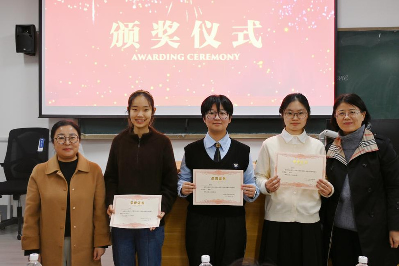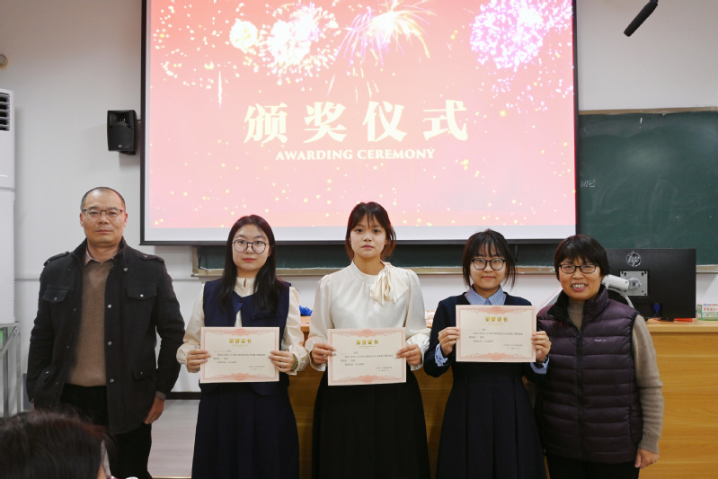 最终经评委老师打分,孟宪鑫、王文彤、赵文琪获一等奖;郭会笑、马文轩、胡芮琪获二等奖;刘蕴婷、杨蕾、黄馨颖、张雯瑶、于琦、邵文灿获三等奖。最后,评委老师为获奖选手颁奖并合影留念。