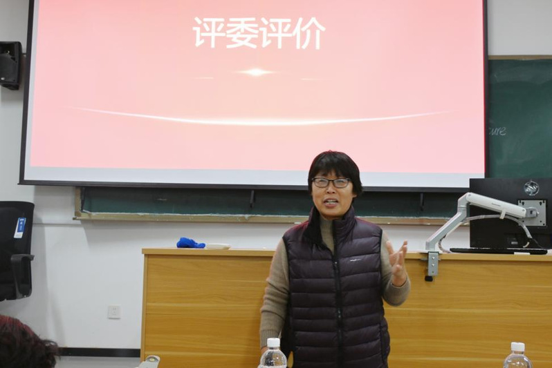 赛后,李金凤老师代表在场的评委点评本次比赛选手的表现。她分别从教学设计、教姿教态、语言表达等方面对选手进行了综合评价,对各位选手的积极参与以及优秀表现给予了充分的肯定,同时对于存在的问题也提出了相关的改进建议,希望各位选手们以赛代练,以赛促学,在比赛中有所收获,争取在今后发挥地更加出色。