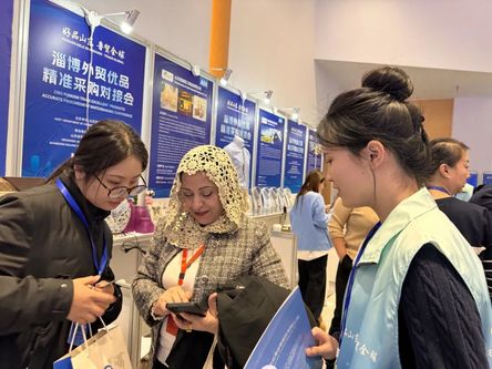 为提高学生实践能力,深化多方合作交流,服务地方经济社会发展,12月23日上午,我院商务英语系主任贾玉洁老师带领“语译帮”志愿服务社团10余名志愿者参加淄博外贸优品精准采购对接会,开展口译志愿服务活动。本次活动由山东省商务厅主办,淄博市商务局、山东省建筑卫生陶瓷协会承办,邀请了来自俄罗斯、瑞典、沙特等19个国家的100余名采购商代表参加,组织了全市机电、轻工、纺织、汽配等多个行业120余家外贸企业参与洽谈,配套对全市优势出口商品进行展览展示。