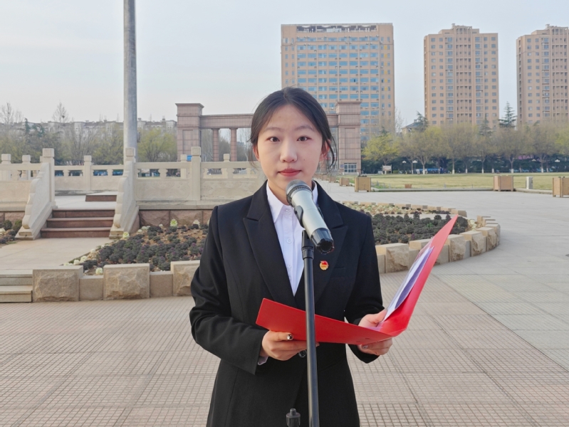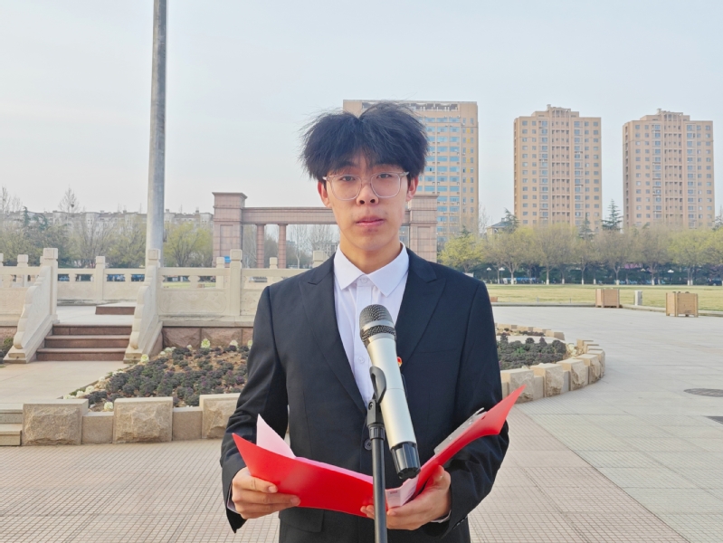 青年学生代表王健羽在国旗下发表主题演讲。他提到,新时代青年应当肩负复兴使命,参与社会实践,为构建和谐社会贡献智慧;弘扬中华优秀传统文化,为提升文化软实力贡献力量。“请党放心,强国有我”的誓言呼吁我们应与新时代同频共振,志存高远,脚踏实地,以青春之名书写盛世华章。