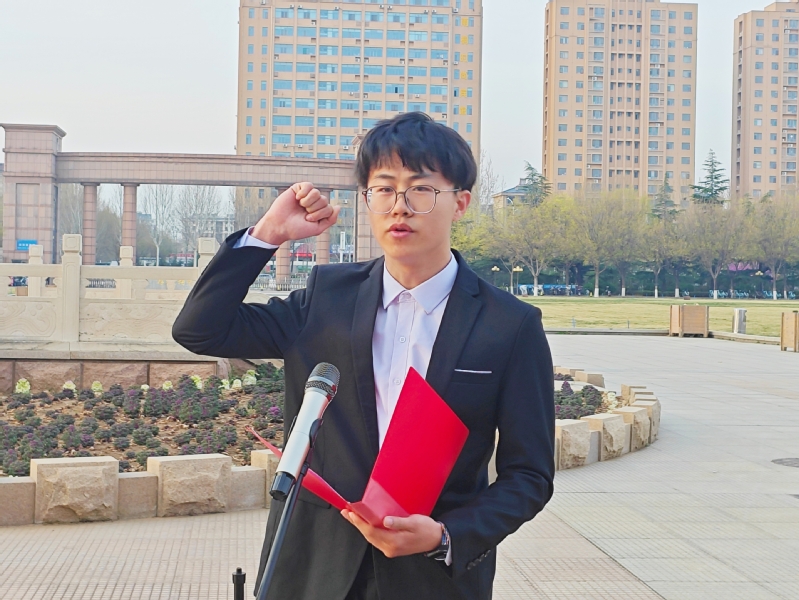 随后,青年学生代表陈公仆带领全体学生庄严宣誓。誓言铿锵有力,饱含青年学生为实现中国梦努力拼搏的热忱与决心,展现出青年学生朝气蓬勃的精神风貌,诉说着对祖国与共青团的热爱。