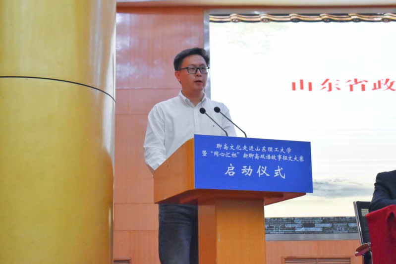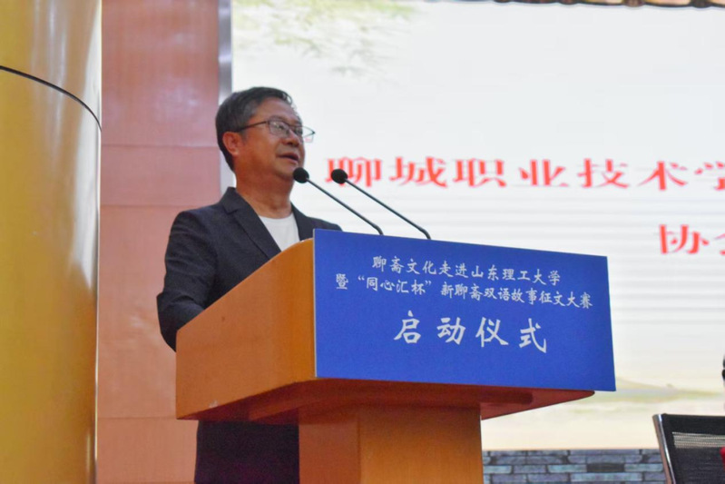 山东省政协“聊斋圆·界别同心汇”牵头委员、淄博市博物总馆副馆长、蒲松龄纪念馆馆长赵虎介绍了征文大赛情况。聊斋志异作为中国古典文学经典,在国内外影响广泛,已被译为20多种语言。本次大赛以“推进文化‘两创’,培育时代新人”为主题,期望能够带动更多人参与聊斋文化的传承与创新。聊城职业技术学院原党委委员、副院长,山东省小小说协会副会长兼秘书长高杉在致辞中提到,此次活动是对2014年蒲松龄小说征文大赛的延续,将掀起新一轮的聊斋热。他肯定了各指导单位、主办单位、承办单位、协办单位的努力,并深刻阐述了本次大赛的重要意义。最后,淄川区政协党组书记、主席李庭致辞并宣布“同心汇杯”新聊斋双语故事征文大赛启动。他指出,聊斋文化承载着地域记忆和人文情怀,此次活动开展能让高校学子感受其魅力,发挥优秀传统文化以文育人、以文聚力、以文铸魂的作用。