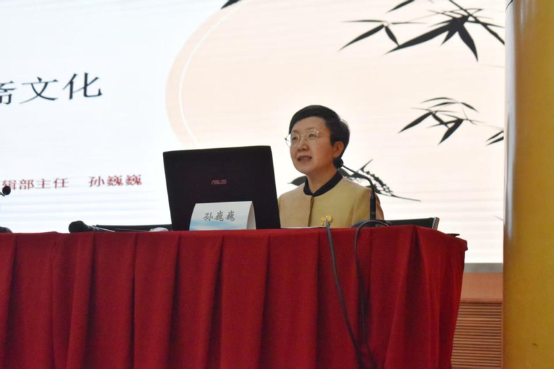 启动仪式结束后,开展了聊斋文化专题讲座,讲座由我院副院长于志涛主持,蒲松龄研究编辑部主任孙巍巍主讲。孙巍巍以“蒲松龄与聊斋文化”为主题,从蒲松龄的生平经历、《聊斋志异》的创作背景和内涵等多个方面进行了讲解。她强调,聊斋文化传承意义重大,有助于中华优秀传统文化在创造性转化、创新性发展中焕新,从而走向国际舞台,凝聚民族精神,彰显文化魅力。