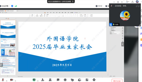 为进一步做好2025届本科毕业生的就业指导与服务工作,帮助毕业生和家长更加充分地了解当前就业形势和学院就业进展,促进家校联动,为毕业生的未来发展出谋划策,5月5日19点,我院召开2024届本科毕业生线上家长会。学院党委副书记、纪委书记宋伟,2025届本科毕业生家长参加会议,会议由毕业班辅导员马梓轩主持。