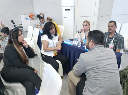 在展会筹备阶段,学院志愿者于5月12日—14日分批次抵达广饶,参加了会方组织的志愿服务培训会,明确了志愿者的工作定位、接待礼仪和岗位职责。志愿者依据会方的规划与安排,分为车站接送、注册引导、通道维护、会议服务等六个小组,前往广饶国际博览中心,全面了解会场环境和工作内容,熟悉服务流程及会议议程。期间,志愿者们有条不紊地开展嘉宾迎接、签到登记、资料整理等会前准备工作,他们严谨认真、礼貌热情,为本次展会的准备工作提供了专业的志愿服务保障。
