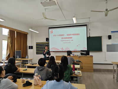 学院党委书记李静以《学习<十项准则>,加强学术规范建设,践行教育家精神》为题作师德师风建设专题报告,通过系统解读《新时代高校教师职业行为十项准则》等文件精神,明确师德底线与行为准则。随后,李静通报了近年来教育系统违反师德师风的典型案例,深入剖析了案例中涉及的学术不端、师生关系不当、言行失范等问题的严重性和危害性。她强调,全体教职工要深刻汲取教训,以案为鉴、以案明纪,始终牢记“立德树人”根本任务,严守师德底线,筑牢思想防线。