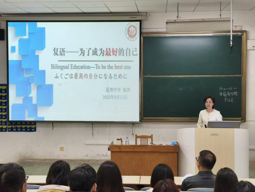 活动特邀淄博中学副校长张萍老师作专题报告。张老师以“润人文·精专业·通智能:做一名未来幸福教师”为核心,从“厚德、博学、笃行、至善”的教师底色,到“内驱力、阅读力、学习力”等成长能力,再到政策导向与AI伦理下的教师发展方向,为师范生构建了兼具人文温度与时代视野的职业成长框架,让在场学子对“幸福教师”的内涵有了更深刻的理解。