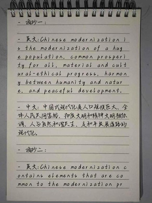 活动期间,学生围绕“用英语讲述中国故事”主线,将语言学习与内容理解相结合。作品形式包括:梳理中国式现代化五大特征的英文思维导图、阐述共同富裕实践的全英文视频、体现人与自然和谐共生理念的创意书籍封面等。多种形式的作品展现了学生良好的英语运用能力与深入的文化思考。