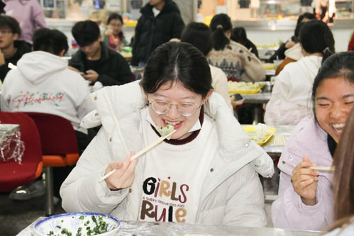 当一锅锅热气腾腾的饺子端上桌,鲜香气息扑面而来。师生们围坐在一起,品尝着亲手包制的饺子,温暖的情谊在氤氲热气中悄然传递,让冬日的餐厅满是团圆的暖意。